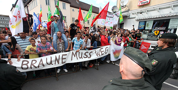 Ungläubig blickt Manfred Eschborn auf das sich ihm bietende Szenario. Der 74-Jährige schüttelt den Kopf: „Ich musste erleben, was das dritte Reich aus den Menschen gemacht hat. Doch diese Kreaturen da haben scheinbar nichts aus unserer Geschichte gelernt.“