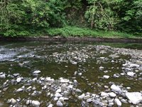 Ganz schlimm ist die Situation im alten Aggerbett hinter dem Wehr Ehreshoven I. Das alte Aggerbett wird aus dem darüber liegenden 2 Rohren mit Wasser gespeist. Wegen des Betriebs des Klärwerkes, das an ihm liegt, hat die Obere Wasserbehörde hier 500 l/s vorgegeben. Wird nun Schwallbetrieb gefahren, dann sinkt der Wasserspiegel im Stau Ehreshoven so weit, dass die 500 l/s nicht mehr erreicht werden. Die Agger sieht dann noch trauriger aus und das Klärwerk dürfte dann auch nicht mehr einleiten.