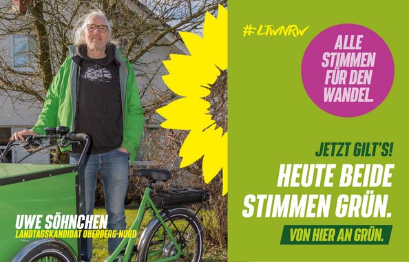 Uwe Söhnchen wird für Bündnis90/ DIE GRÜNEN in den Landtagswahlkampf ziehen. Seine digitale Wahl zum Direktkandidaten im Wahlkreis Oberberg I muss noch von den Mitgliedern per Brief bestätigt werden.