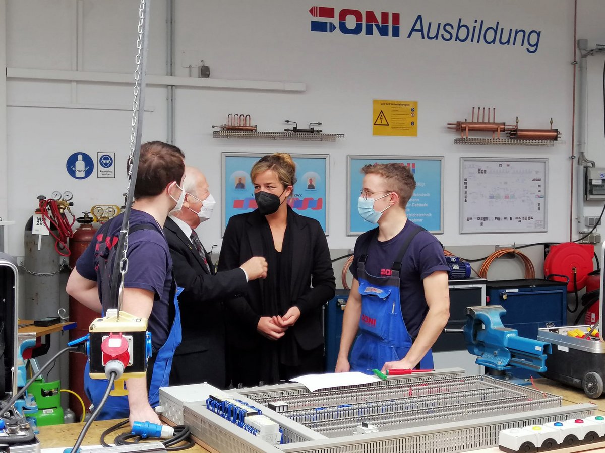 Schwer beeindruckt zeigte sich Mona Neubaur bei ihrem Besuch der Firma ONI Wärmetrafo GmbH in Lindlar- Niederhabbach. Die Firma hat sich aus kleinsten Anfängen inzwischen zu einem weltweit gefragten Anbieter von Wärmerückgewinnungsanlagen in der Industrie entwickelt. Besonders die Kunststoffbranche nutzt die Anlagen zur Energie- und damit Kosteneinsparung. Bei den gegenwärtig hohen Energiepreisen ist diese Technologie besonders interessant- noch viel wichtiger ist sie im Hinblick auf die notwendigen Effizienssteigerungen zur Erreichung der Klimaziele.